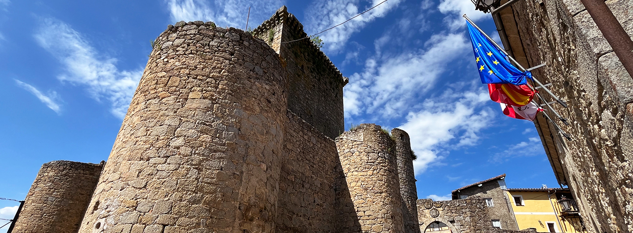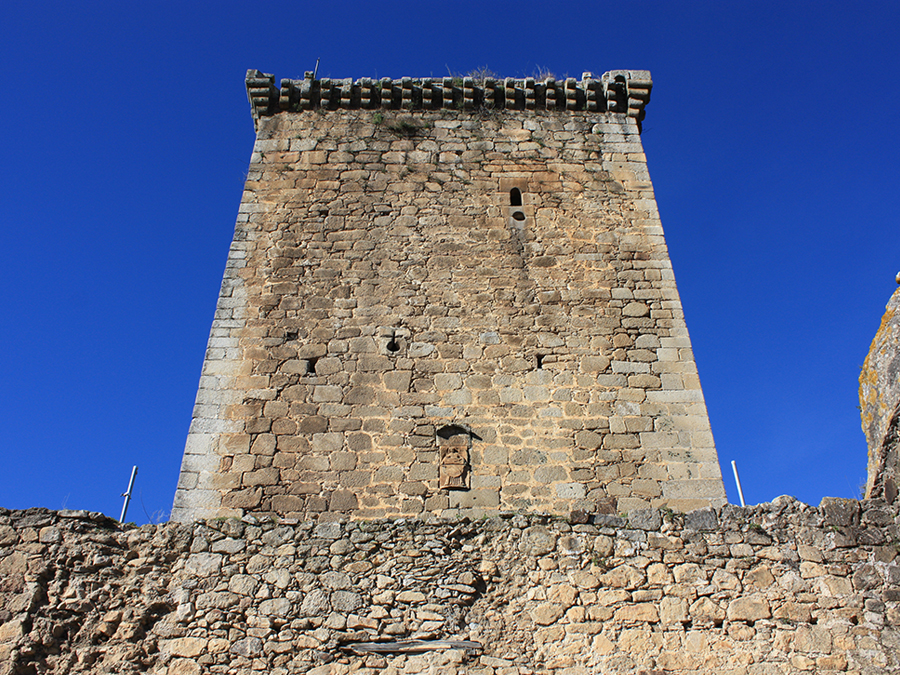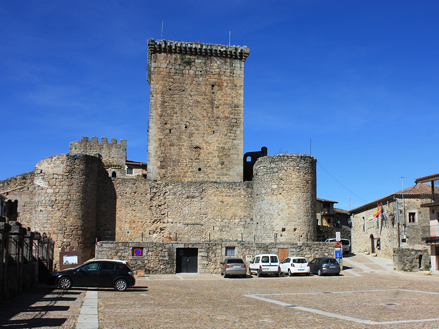 El Castillo preside la Plaza Mayor de la localidad y se hace visible desde la llegada. Ocupa la parte menos defensiva de la atalaya sobre la que se asienta la Villa. Fue construido en el S.XIV por la familia Zuñiga (Condes de Miranda). Su forma no es geométrica por su adaptación a la muralla existente. Dispone de sus propias murallas, torre del homenaje y patio de armas que actualmente es la Plaza Mayor de la Villa